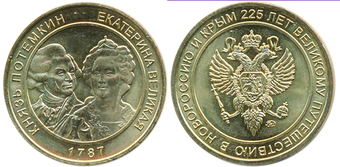 Жетон-открытка. Екатерина II и Великая Князь Потемкин - 225 лет путешествию в Новороссию и Крым. ММД