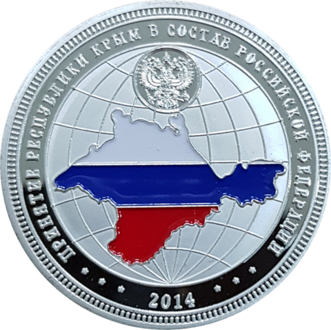 Жетон Президент Владимир Путин Присоединение Крыма 2014 год посеребрение цветной Копия
