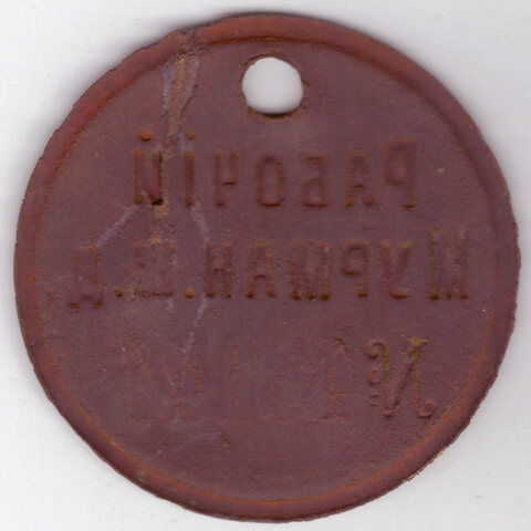 Жетон. Рабочий Мурмонской ЖД. (Железная дорога) №48144 (есть забоина с отверстием) F