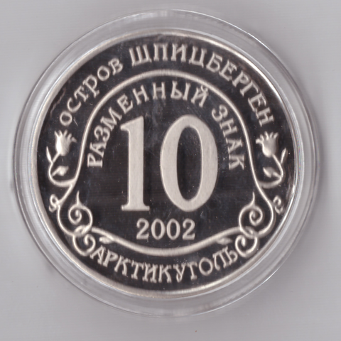 Жетон Разменный знак 10 рублей 2002 года Шпицберген Арктикуголь. Наводнение - центр Европы Копия