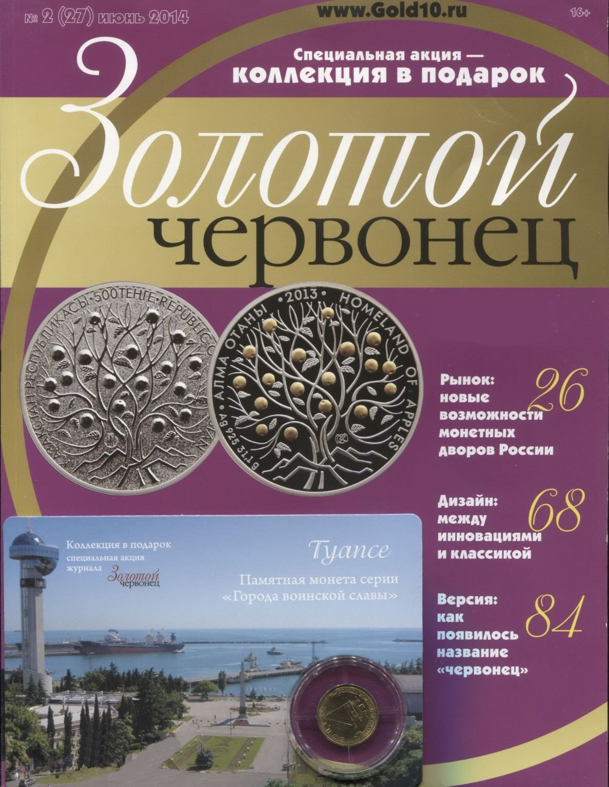 Журнал Золотой Червонец №27 (2) Июнь 2014 год (В подарок 10 рублей 2012 года Туапсе - Города воинской славы в буклете)